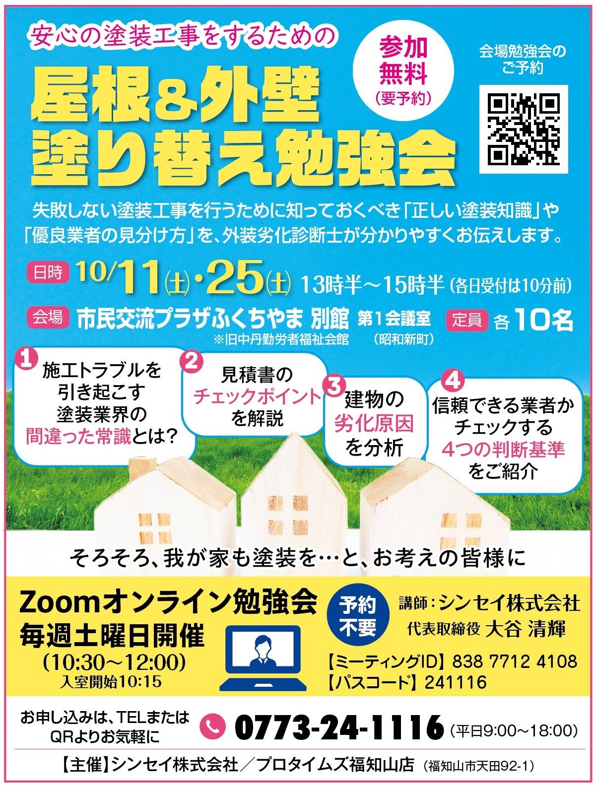 安心の塗装工事をするための【屋根&外壁塗り替え勉強会】 【場所】市民交流プラザふくちやま 別館【第一会議室】 |