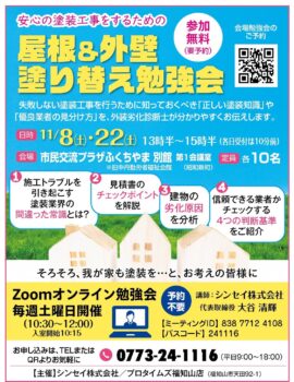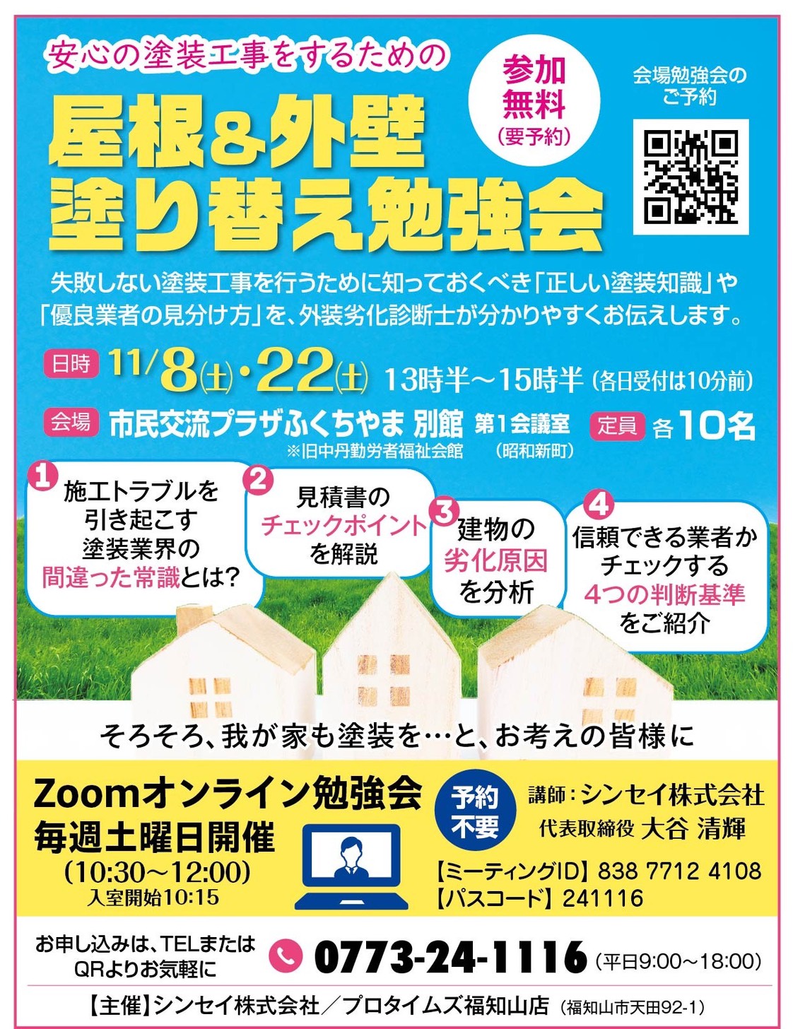 安心の塗装工事をするための【屋根&外壁塗り替え勉強会】 【場所】市民交流プラザふくちやま 別館【第一会議室】 |